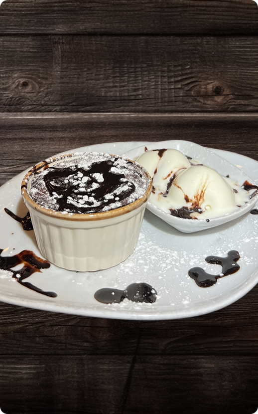 Çikolata sos ve vanilyalı dondurma ile