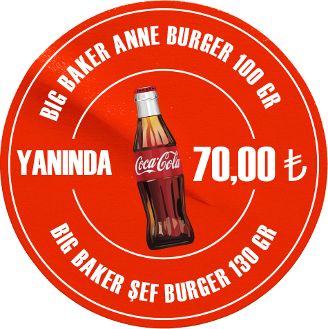 Kare ekmek içerisinde 170 gr Kocaman BB x2 burger köftesi, x2 cheddar peyniri, baker sos, karamelize soğan, köz biber, turşu, yeşillik yanında patates tava ile